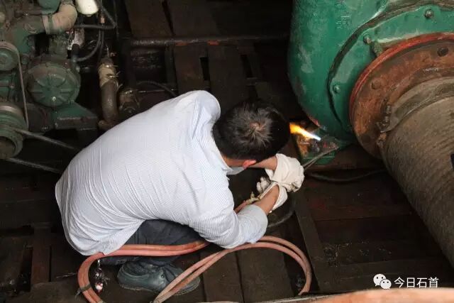 11日,在石首长江海事码头,执法组现场拆解了该“三无”采砂船舶的采砂泵、输砂管等。