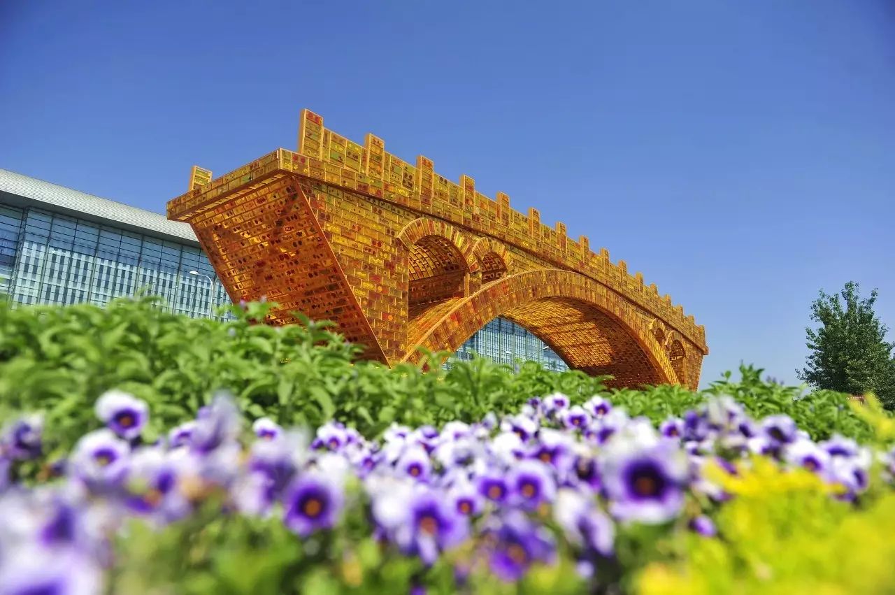 △高峰论坛主会场标志性花坛“丝路金桥”