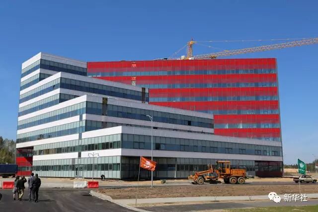 5月12日在白俄罗斯明斯克机场附近的中白工业园拍摄的即将交付使用的办公楼。