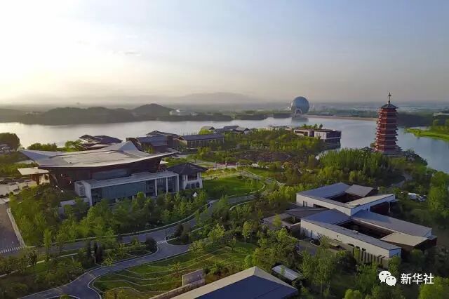 无人机航拍的雁栖湖(5月6日摄)。怀柔雁栖湖国际会议中心是此次高峰论坛的主会场。
