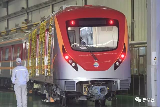 下线仪式上的巴基斯坦拉合尔轨道交通“橙线项目”首列地铁列车(5月15日摄)。这一项目系中巴经济走廊早期收获和示范性项目,也是“一带一路”倡议背景下中巴合作的示范项目。