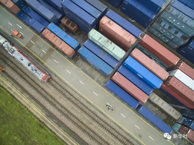 这是中欧(武汉)班列起点、武汉铁路集装箱中心站内的中欧班列集装箱(5月11日摄)。