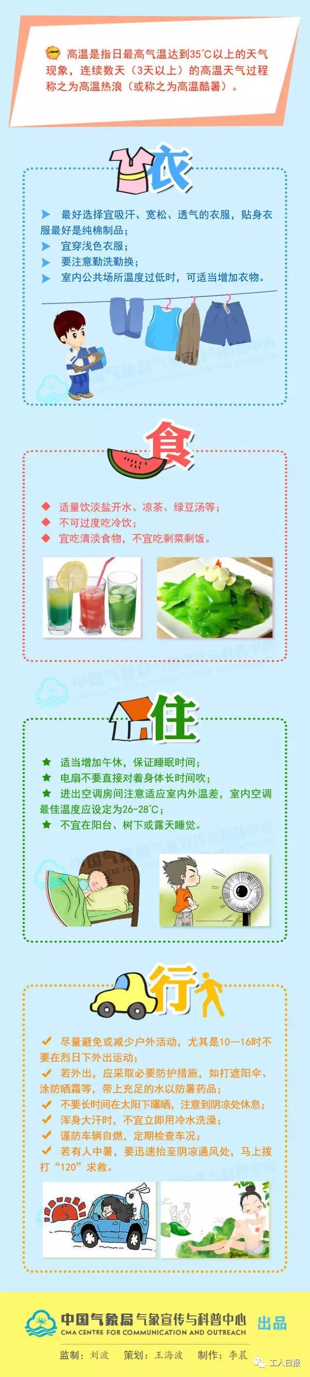 3、根据《防暑降温措施管理办法》,规定日最高气温达到40℃以上时,应当停止当日室外露天工作。因高温天气停止工作、缩短工作时间的,用人单位不得扣除或降低劳动者工资。