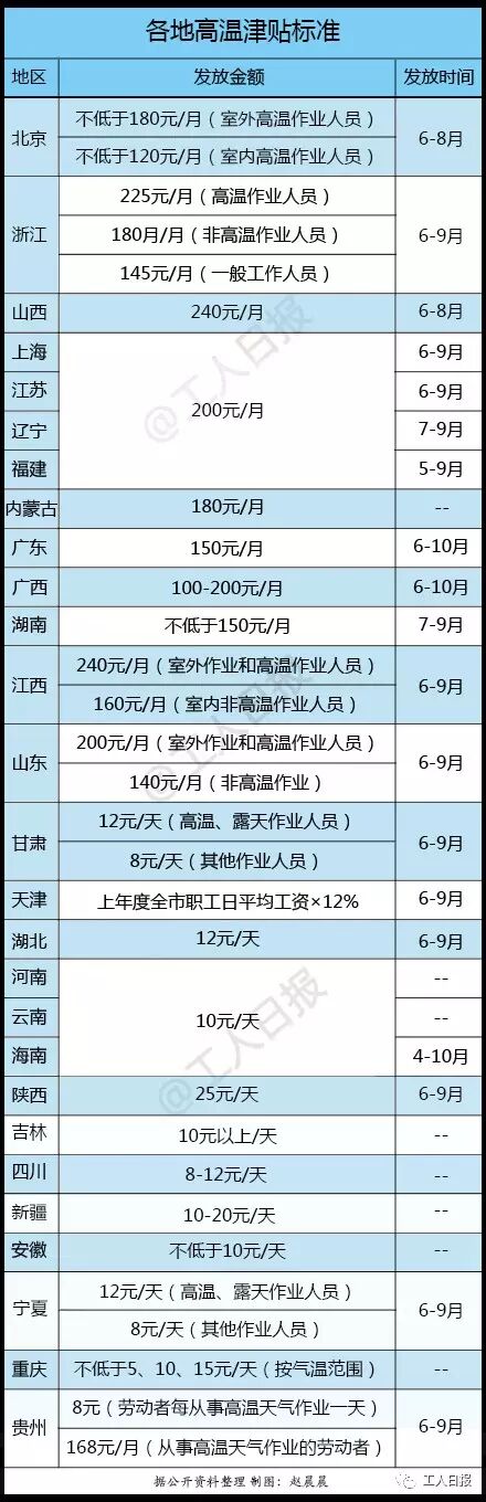 高温之下,从下个月起,不少地区都会为职工发放一笔高温津贴。那么,各地标准是多少?职工还有哪些福利?我们一起来看看。