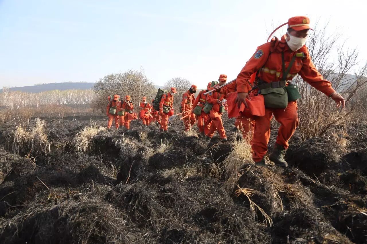 在4日晚上,他们还徒步行军几十公里赶往一个火点,在晚上零下几度的河里面,徒步涉水过河,来到对面的山上灭火。