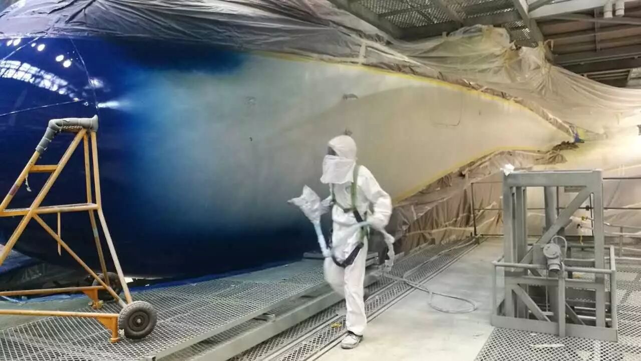 据悉,飞机的油漆涂层必须能承受恶劣的天气状况,如极冷、极热和强风。因此飞机换装喷涂是一项技术难度很高的工作,工序繁多,工程量相当大。