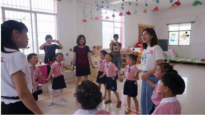 5月27日早上,人民网廖原者来互洪湖市曹市镇福娃双语幼儿园,和留守儿童共庆“”六一。