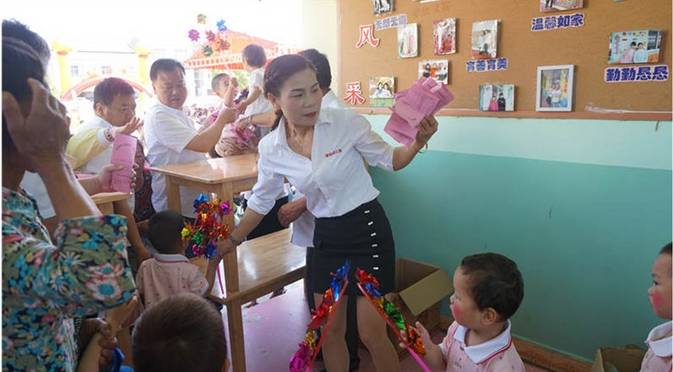 福娃双语艺术幼儿园园长刘为群接受人民网采访。她说,该园有五百多名小朋友,留守儿童占90%以上,为了给他们更多关爱,平时老师会给留守儿童过生日,让留守儿童感受到集体的温暖。“六一”前夕,学校还给外地务工的家长打电话,让家长抽空回家,陪孩子过节。今年“六一”演出的主题是传承国学,传播中华传统文化。
