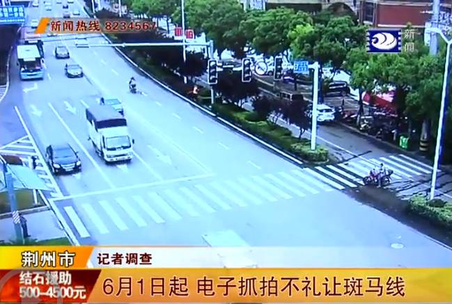 从今年6月1号起,将启用高清电子探头,对机动车不礼让斑马线的交通违法行为进行实时抓拍。