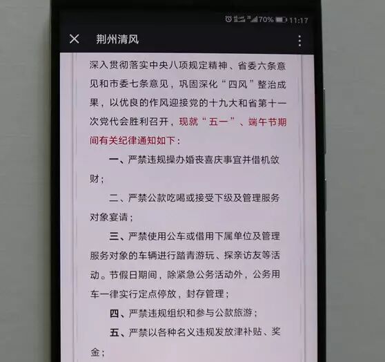 日前,荆州市各级纪检监察机关结合开展第十八个党风廉政建设宣传教育月活动,紧盯公车私用、滥发钱物、公款吃喝、违规使用公款购买赠送节礼等节日易发问题,坚持提醒预防与监督检查两手抓,着力营造风清气正节日环境。