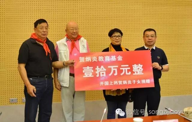 松滋设立贺炳炎教育基金 首批资金10万元由将军双子捐赠! 2016-09-30 09:01 来源:松滋教育体育局 0 导读:9月28日,松滋市设立贺炳炎教育基金,首批资金10万元由将军长子贺雷生先生、次子贺陵生先生捐赠。当天,捐赠仪式在市会议中心举行,市委常委、组织部长裴毅参加活动并致辞。 捐赠活动中,少先队员为贺雷生、贺陵生两位革命后代及其家属献上鲜花,佩戴鲜艳的红领巾。 贺雷生、贺陵生先生在捐赠仪式上表示,松滋大地走出了一批批革命儿女,有着优良的红色革命传统。在松滋设立贺炳炎教育基金,不仅是传承老一辈革命者优秀品质的需要,更是延续下一代承担建设伟大祖国繁荣昌盛使命的需要。他们希望通过这项基金的建立,带动更多的成功人士关注松滋教育事业,造福更多的家乡子弟。 捐赠仪式后,贺雷生、贺陵生先生一行在市委宣传部副部长黄振亚、市教体局局长徐金平的陪同下踏上访问将军故里的旅程。 在刘家场镇贺炳炎广场,贺雷生、贺陵生先生一行在纷纷细雨下留影。 在贺炳炎中学,贺雷生、贺陵生先生参观了校园,聆听了该校为纪念贺炳炎将军创作的歌曲。情到深处,一行人报以热烈的掌声。贺雷生、贺陵生兄弟俩也被师生们饱含深情的表演感动得热泪盈眶,欣然他们合影留念,并留存《你的光辉耀中华》词谱。 在贺炳炎将军故居(刘家场镇河田坪村),一行人瞻仰了将军出生地遗址、投身革命前学艺的铁匠铺,寻访父亲的革命足迹,追忆父亲传奇而辉煌的革命生涯。此外, 兄弟俩还亲切探望了仍然生活在松滋老家(刘家场镇)的大姐——贺炳炎上将的长女贺雷珍女士,血浓于水,姐弟情深,亲人相见,喜极而泣。 贺雷生、贺陵生先生一行还受邀前往卸甲坪乡参观,感受家乡旅游开发的热潮,曲尺河温泉度假村、马尾峡、鲤鱼洞、民俗村等景点,为客人们留下了深刻的印象。 故里重游,思绪万千。贺雷生、贺陵生先生一行对松滋老家日新月异的变化赞叹不已,对家乡未来的发展充满希望。 据了解,准备在中央一台播出的电视剧《独臂将军贺炳炎》正在选景筹拍阶段,松滋或将成为主要拍摄基地。
