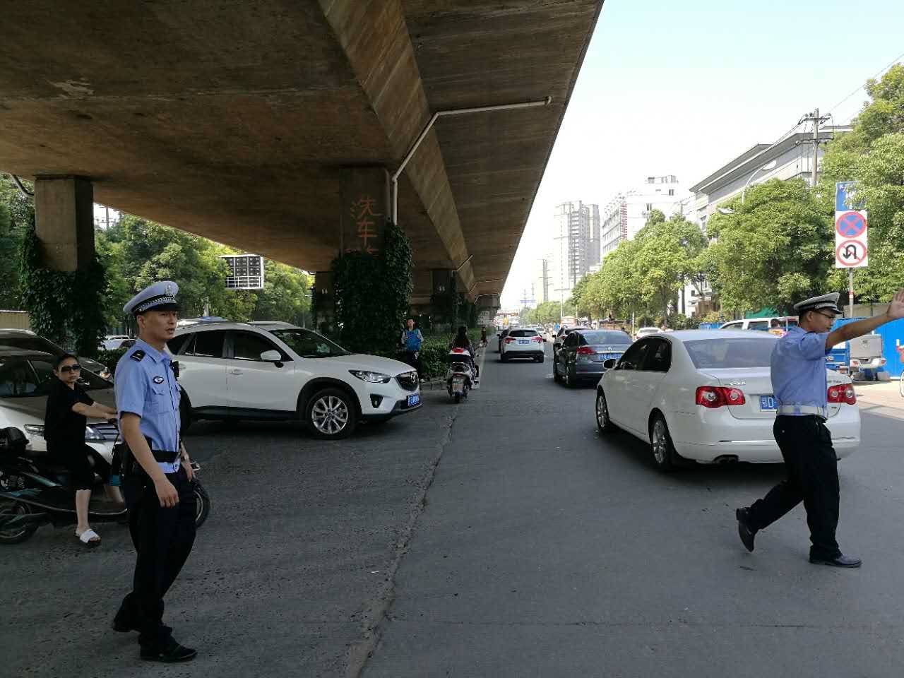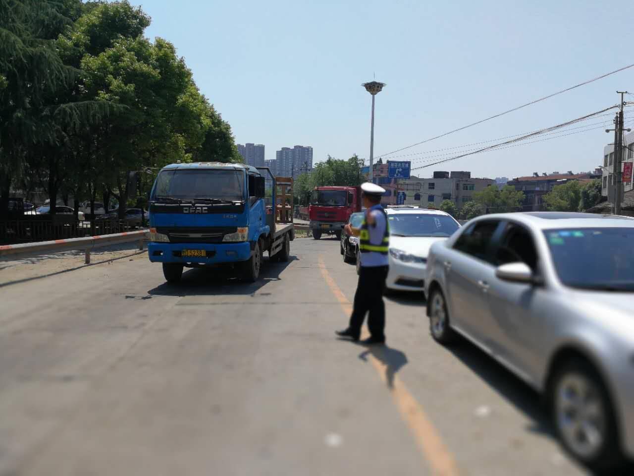 端午期间,二大队民警在桥北高速出入口和荆沙大道塔桥路口执勤,疏导交通。