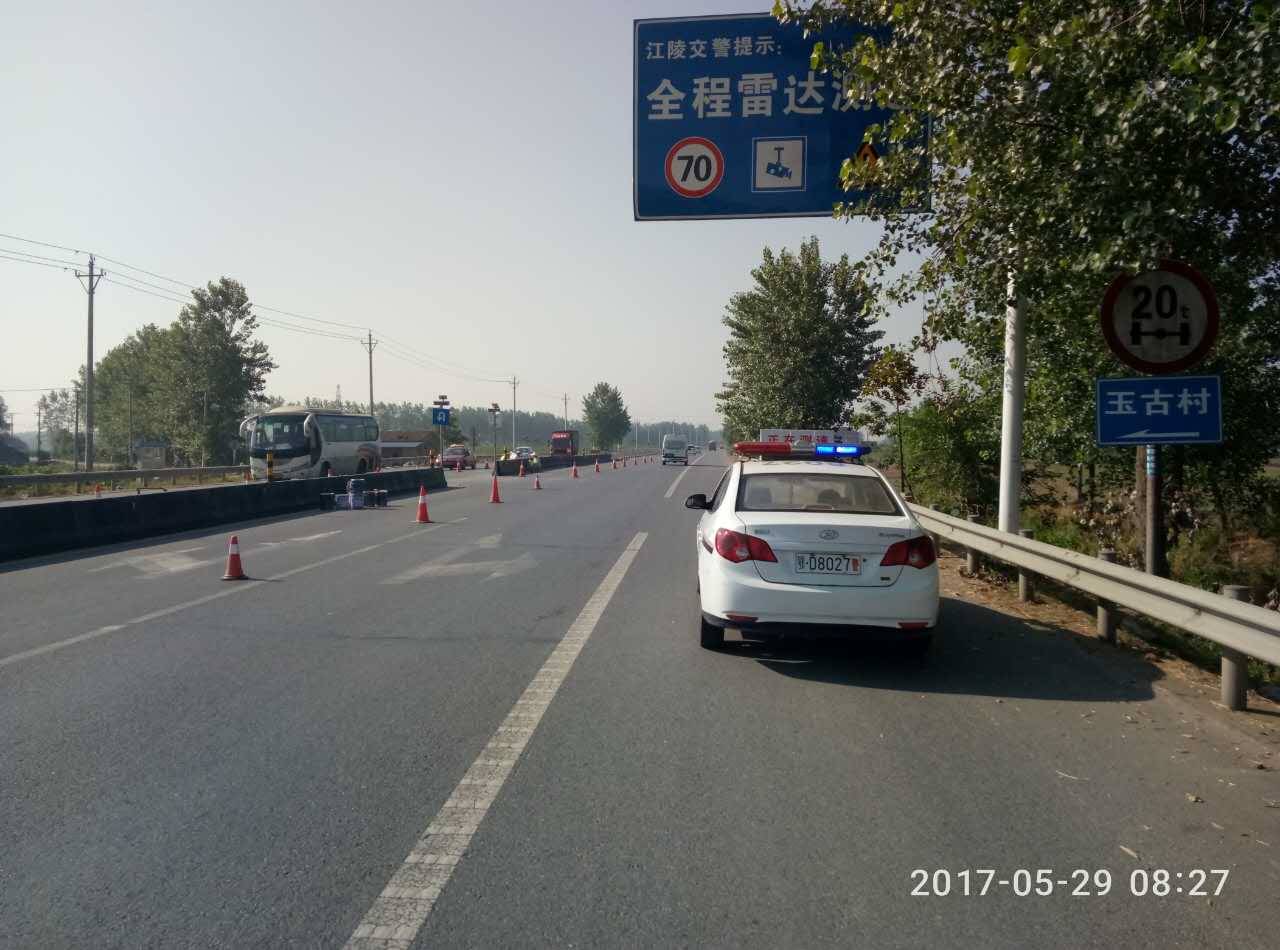 端午期间,一大队加强207、318国道巡逻管控,荆松一级公路亮灯巡逻,通过喊话提示,压降车速,确保节日道路交通安全。