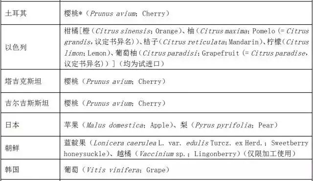 5月24日,质检总局发布了《获得我国检验检疫准入的新鲜水果种类及输出国家地区名录》(2017年5月11日更新),涉及泰国、马来西亚、印度尼西亚等43个国家和地区。部分详细情况见下表。
