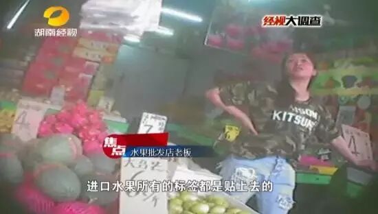 商家大大方方承认,标签就是自己贴的。在水果表面贴上一个进口标签,国产水果就摇身一变成了“洋水果”,身价倍增。