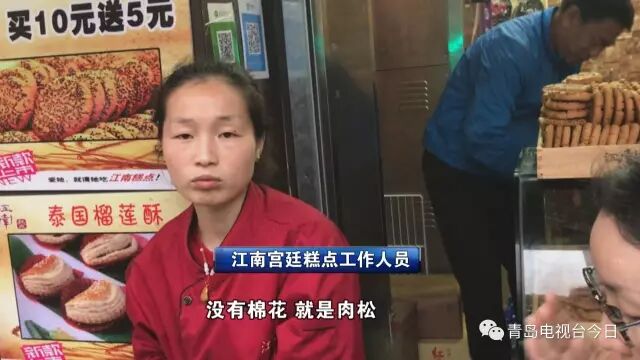 上周一(5月22日)开始,一段关于“棉花肉松”的视频在朋友圈里流传开来……视频中,一名女子表示自己在山东青岛一家糕点店购买了肉松蛋糕,怀疑里面的肉松是棉花做的!