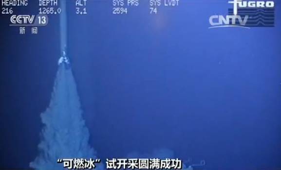 6月2日,国土资源部宣布:我国正在南海神狐海域进行的天然气水合物试开采已连续产气22天,气压气流以及井底等各项状态稳定良好,试开采取得圆满成功,标志着我国成为全球海域天然气水合物试开采连续产气时间最长的国家。天然气水合物,指的就是“可燃冰”。