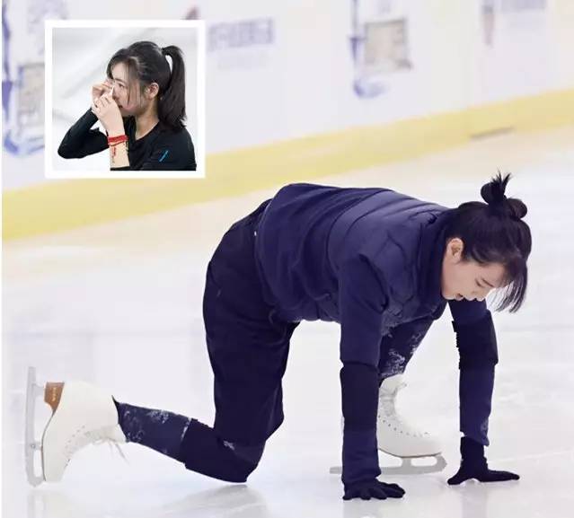 张静初从一开始的摔地落泪到后来逐渐适应冰感,摔倒后迅速起身。