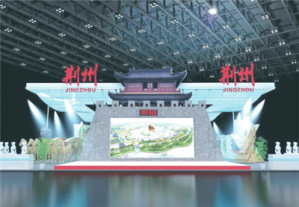 为了突出“楚国故都 三国古城”的主题,荆州展台设计上以三国文化与楚文化相结合,深度发掘荆州厚重的历史文化底蕴,突显核心景区和荆州全域旅游发展面貌。展台正面以宾阳楼和古城墙造型为主,朱红的城楼、灰白的城墙,展现荆州古城风韵。城墙中间将设置一块LED大屏,播放旅游宣传片。
