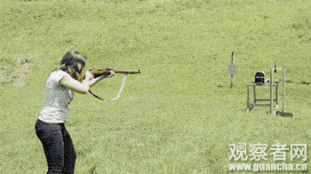 表演开始,小哥使出两种枪在8米开外轮番射击。