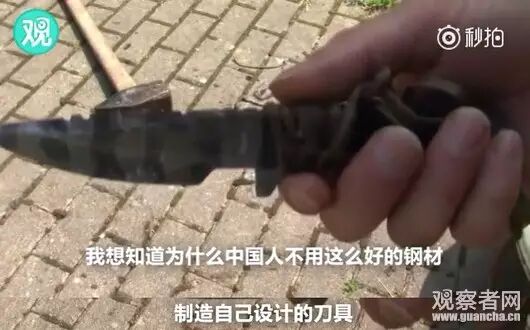 无独有偶,曾经有一个德国人测试仿冒军刀,结果中国山寨军刀反而让他怀疑人生↓