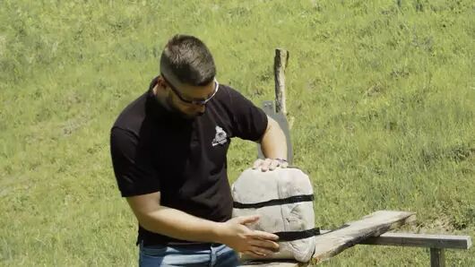 其实,防弹板的4级防护标准应当是20~50米距离,抵御7.62mm*39mm的步枪弹。而在这里,莫辛纳甘步枪所用的是7.62mm*54mm的步枪弹,在8米外近距离射击。