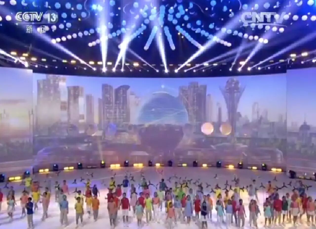 当晚,习近平同纳扎尔巴耶夫等各国领导人共同出席阿斯塔纳专项世博会开幕式并观看焰火表演。