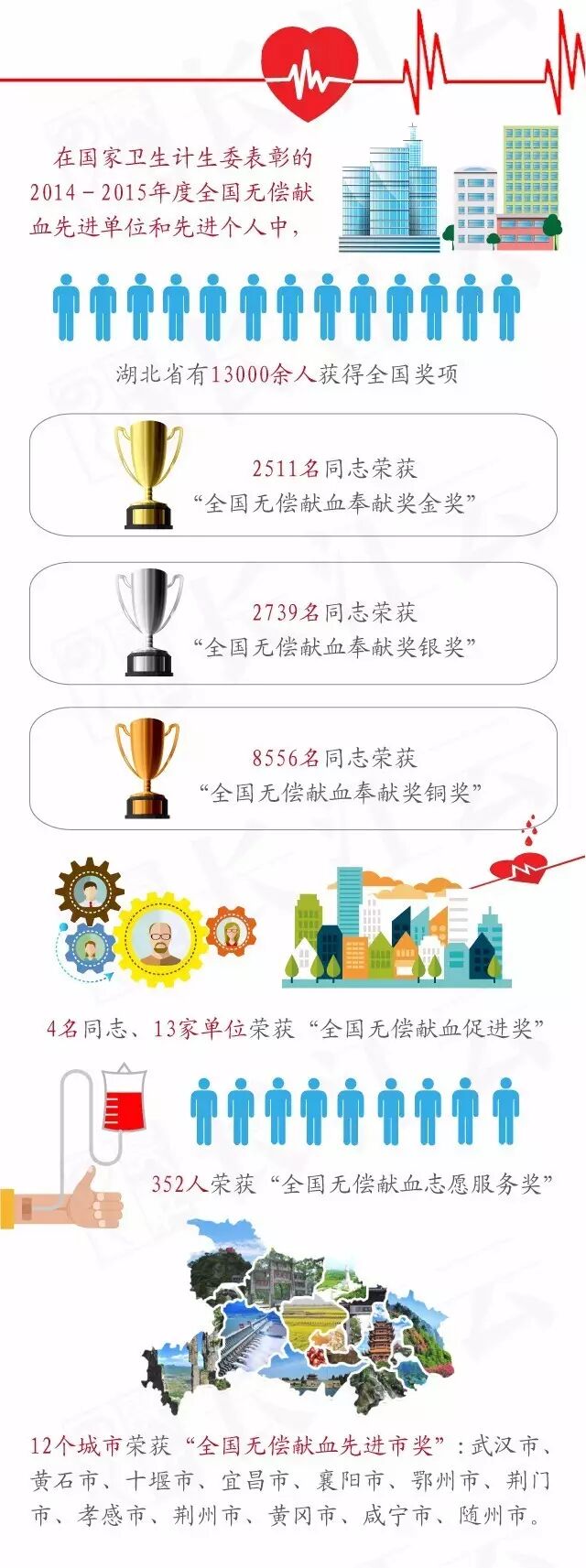 6月12日,湖北省纪念第十四个“世界献血者日”暨2014-2015年度全国无偿献血先进单位和先进个人表彰大会在武汉召开。世界上每秒钟就有3个人需要输血,血液的来源只能依赖于他人的捐献。湖北就有很多这样有爱的捐献者。