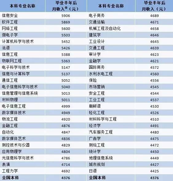 6、2016届大学毕业生毕业半年后平均月收入3988元,近三届大学生实际工资保持稳定上升趋势,跟踪调查显示,高等教育在毕业三年内回报明显。其中本科为4376元,高职高专为3599元。