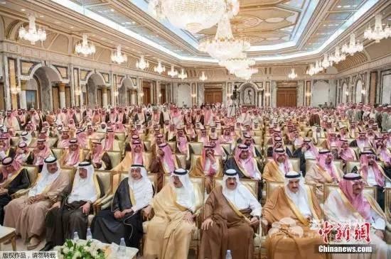 当地时间2017年6月21日,沙特阿拉伯麦加,新王储穆罕默德·本·萨勒曼在麦加举行宣誓效忠的就职仪式。