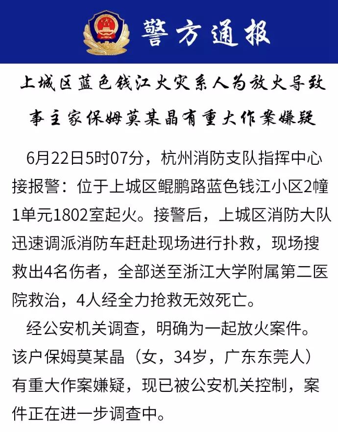 杭州一处住宅6月22日清晨突发大火,除保姆逃生外,女主人与3个孩子获救后均抢救无效死亡。事发时,保姆从专用的保姆电梯成功逃生。