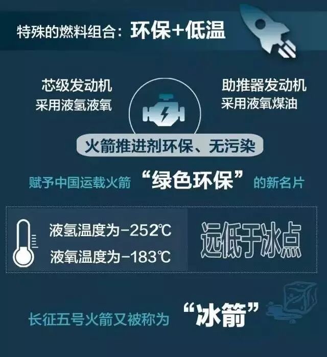 长征五号是我国研制的新一代运载火箭中能力最强的,火箭主体采用的是超低温的液氢、液氧作为推进剂。氢燃烧只产生水,这对于环境来说更加环保。