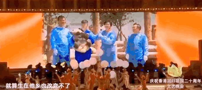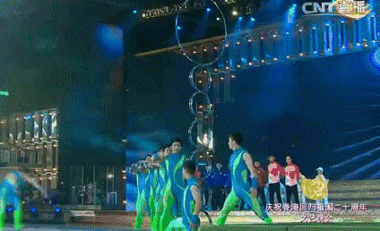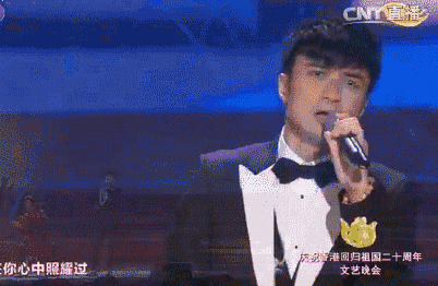 歌手古巨基用粤语演唱歌曲《明星》。今晚,香港是最耀眼的明星,全球聚焦,万众瞩目!