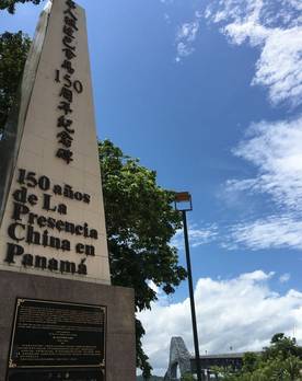 在巴拿马的美洲大桥桥头一端,竖立着一个约十米高的方碑,上面写着:纪念华人抵达巴拿马150周年纪念碑,它由当地华人在政府支持下筹款修建。