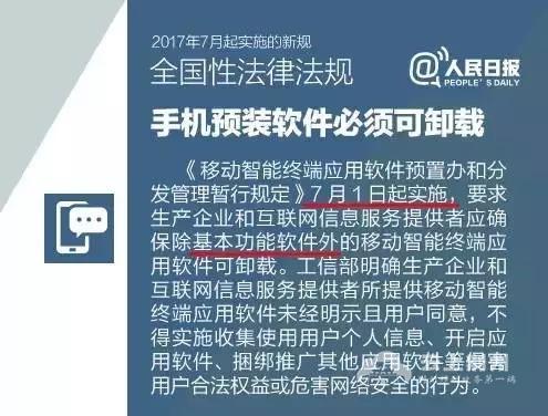 2016年12月,工信部印发了《移动智能终端应用软件预置和分发管理暂行规定》,要求今年从7月1日起: