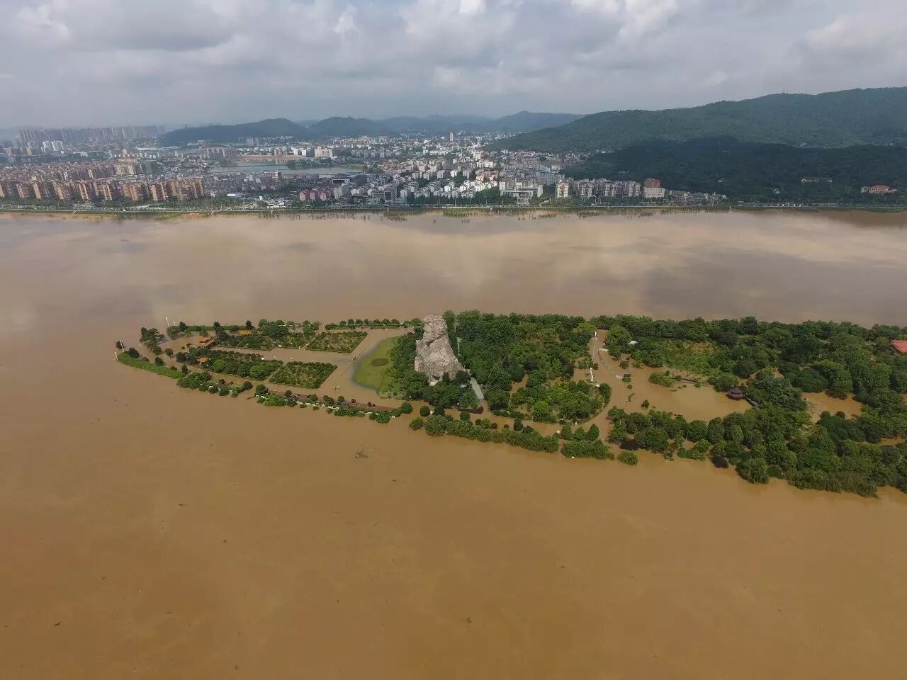 受强降雨持续影响,湖南省境内江河湖泊水位暴涨。