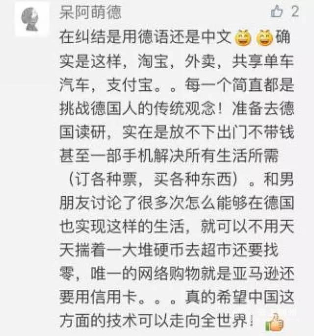 据德国之声报道,在中国生活了10年的德国网红阿福,最近给总理默克尔写了封信,强烈呼吁德国学习中国缔造无现金社会的成功经验,“中国朋友一直在学习德国的工业4.0,是时候德国人也该向中国学习点什么了。”