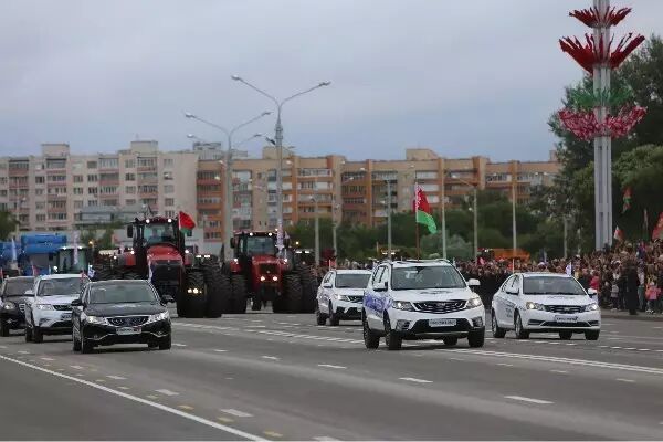 在今年的阅兵式上白方安排七辆吉利轿车“领衔”民用车辆展示,也显示了白方对于这款车型的发展前景充满信心。