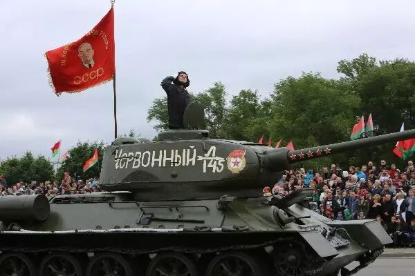 在武器装备展示部分,参与解放明斯克的T-34坦克最先出场,这款功勋坦克在马路上驶过时发出的隆隆声仿佛在告诉世人,尽管型号较老,但它仍能承担保家卫国的重任。