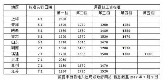 1、截至7月,今年至少已有上海、青海、陕西、甘肃、山东、湖南、福建、天津、贵州、江苏等10个地区上调了最低工资标准。