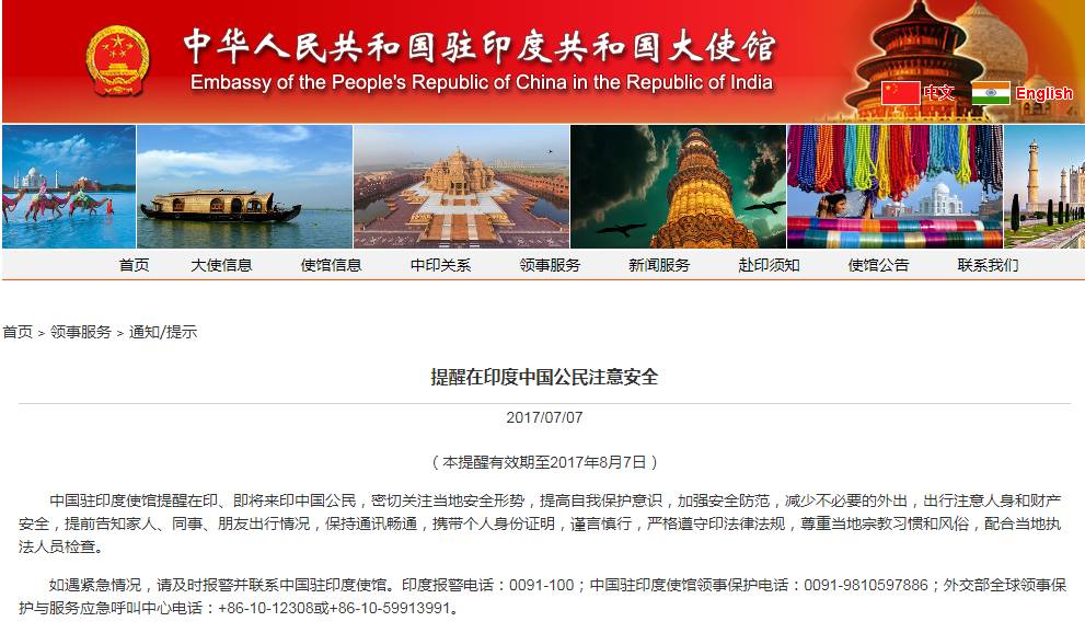 中国驻印度大使馆网站7日发布公告,提醒在印度和即将来印度的中国公民注意安全。