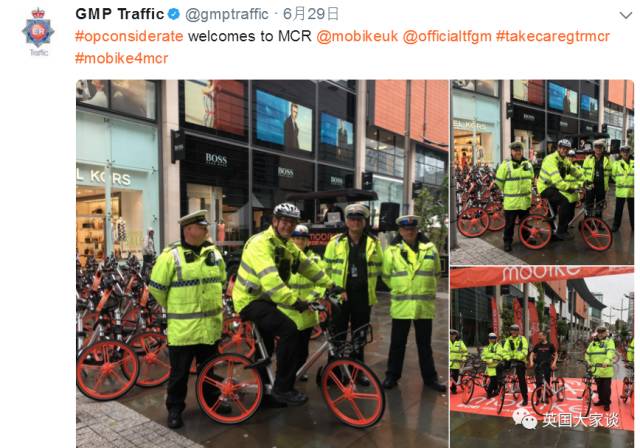 启动仪式上,曼彻斯特的警察部门还成为中国共享单车在英国的首批用户之一。