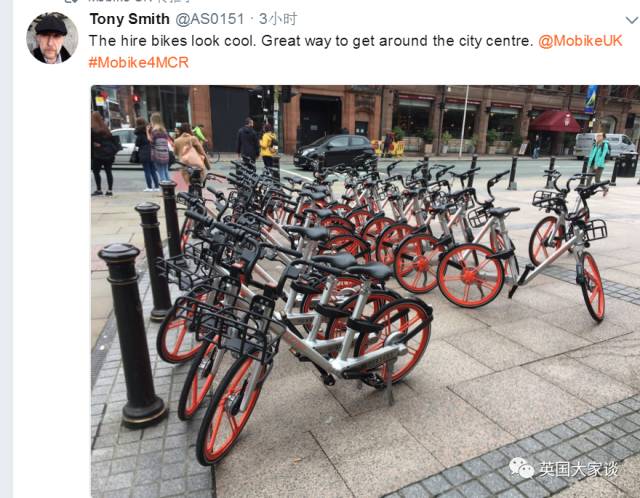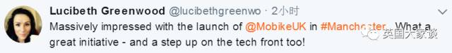 “非常惊艳,共享单车在曼城的启动令人激动。非常棒的起步。”