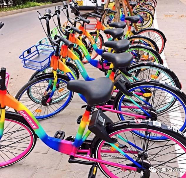 在曼城人嫌弃伦敦人连共享单车都骑不上的同时,我国网友默默晒出了五颜六色的共享单车……