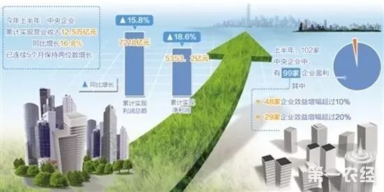1、2017年上半年央企收入利润双创新高,累计实现营业收入12.5万亿元,同比增16.8%。累计实现利润总额7218亿元,同比增15.8%,净利润5353.2亿,同比增18.6%。