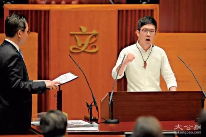 姚松炎在宣誓中时自行加入“定当拥护香港制度,争取真普选”字句。