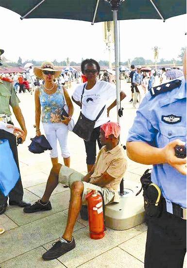 6、非洲游客天安门广场中暑:是一名60岁老人,来自非洲一个岛国,因习俗拒喝藿香正气水热晕。执勤哨兵让游客在岗伞内休息,并为中暑游客拨打了急救电话。