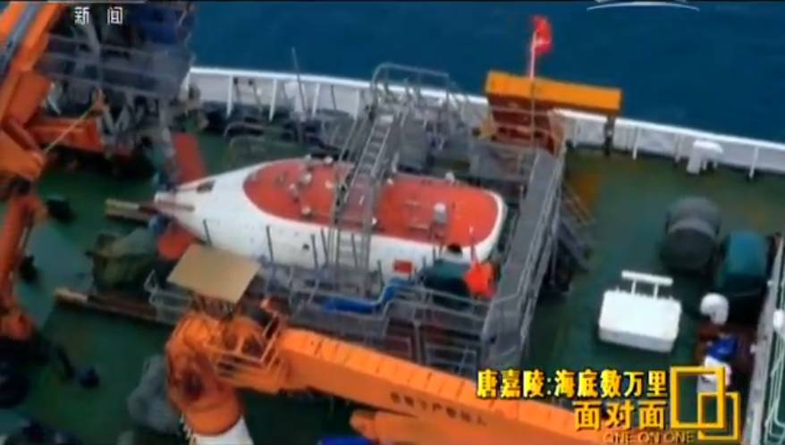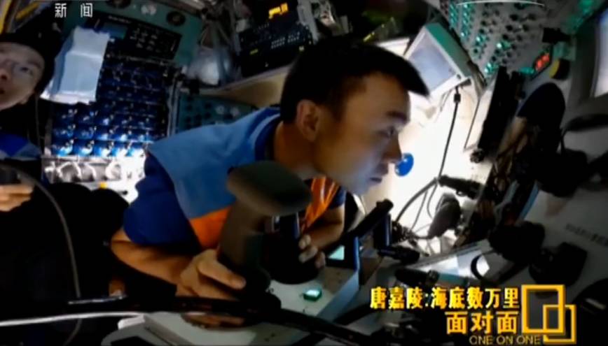 唐嘉陵:这个纪录是我们蛟龙号团队创造的,三次突破7000米,我们都展示了我们的五星红旗,虽然说我们远离祖国大陆,但是我们背后有强大的祖国。只有我们强大的祖国,才能有蛟龙号这样的国之重器。
