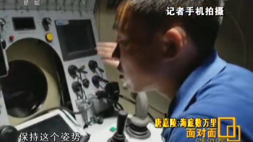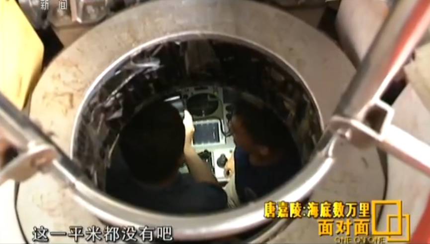 记者:好,我们到蛟龙号的驾驶舱来体验一下……这个舱里,一平米都没有吧?