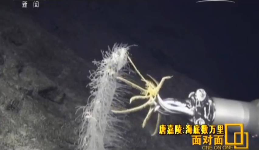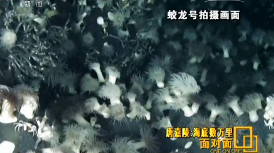 唐嘉陵:深海世界,有的地方它很荒芜,有的地方生长着千奇百怪的生物,蛟龙号坐底的时候,犹如一只外星飞船,砸入了一片生物的浪潮中。
